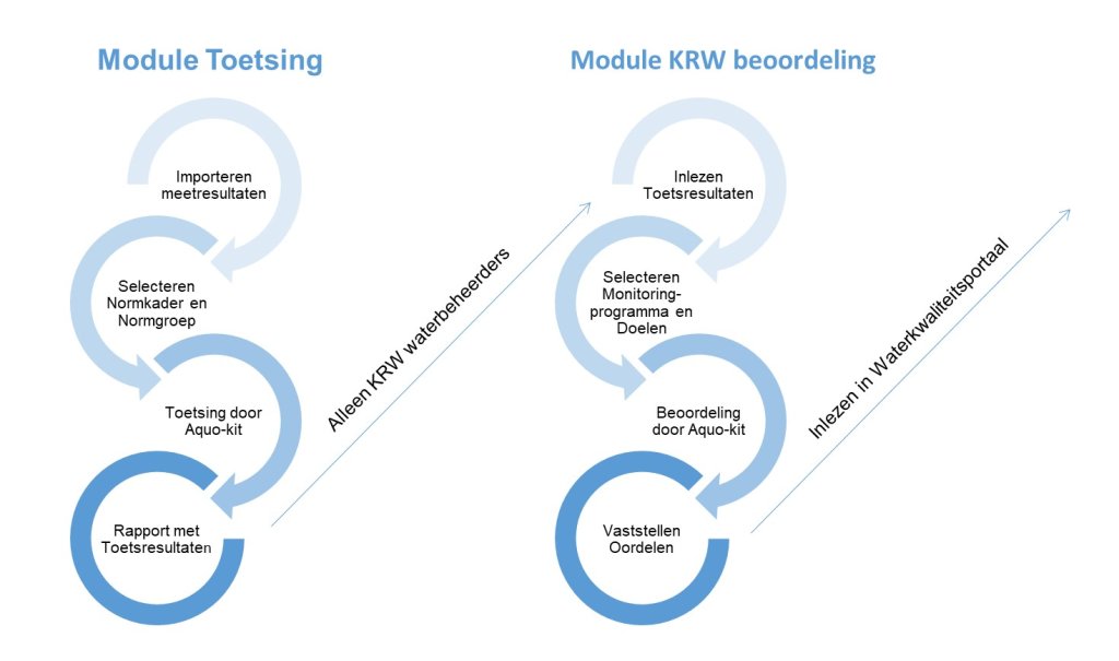 Waterbeheerders (waterschappen, provincies en Rijkswaterstaat) gebruiken de Aquo-kit onder meer voor hun jaarlijkse KRW-toestandsbeoordeling. Met de Aquo-kit kunnen fysisch-chemische en biologische monitoring-gegevens van oppervlaktewater-, grondwater- en bodemkwaliteit op eenvoudige en een eenduidige manier worden getoetst aan landelijke waterkwaliteitsnormen.